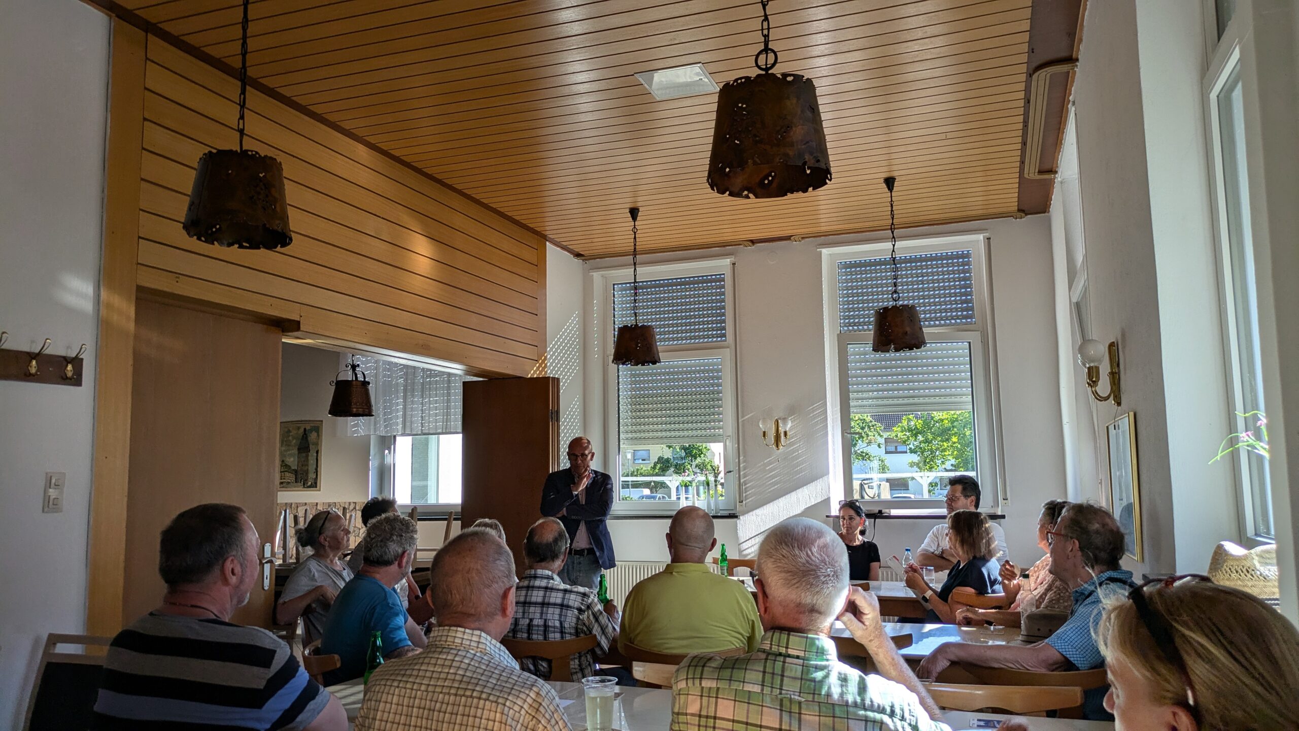 Bei der jährlichen Ortsbegehung der Siedlergemeinschaft Hirschacker e.V. diskutierten über 20 Anwohner mit Oberbürgermeister Dr. Rene Pölt und weiteren Stadtvertretern über lokale Anliegen. Besprochen wurden die Aufwertung des Marktplatzes, Verkehrssicherheit durch zurückzuschneidende Vegetation, Müllprobleme unter der Autobahnbrücke und die Instandsetzung von Gehwegen. Im Anschluss gab es im Wirtshaus „Zum Rheintal“ bei einem kühlen Getränk weiteren Austausch. Oberbürgermeister Pölt verkündete zudem, dass die Inbetriebnahme des Fahrstuhls am S-Bahn-Haltepunkt und die Erweiterung der Hirschackergrundschule kurz bevorstehen.
